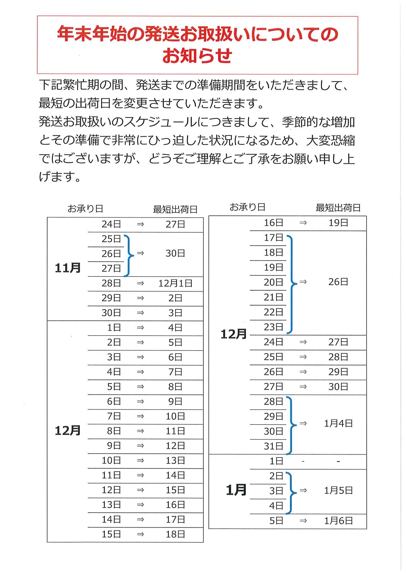 11月24日~2026年1月3日お承りの発送お取扱いについてのお知らせ