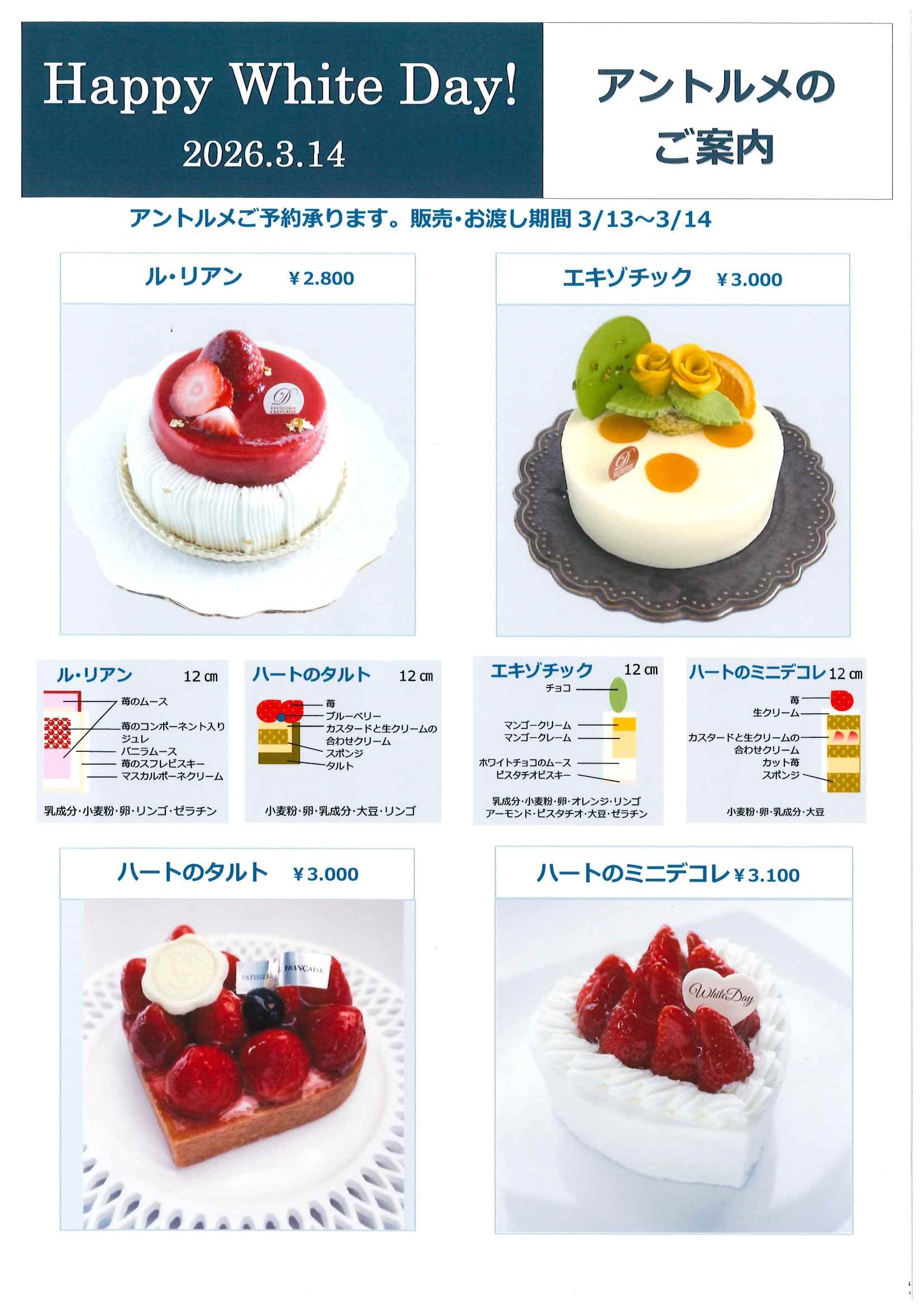 2026年 ホワイトデー アントルメのご案内